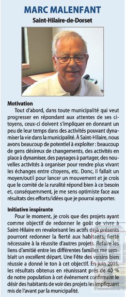 Suite à la rencontre de consultation tenue le 24 novembre 2014 où une vingtaine de citoyens ont échangé sur leur vision du "St-Hilaire-de-Dorset de demain" ainsi qu’aux commentaires recueillis lors d’une rencontre privée de citoyens tenue le 23 novembre 2014, le comité de la ruralité a élaboré le plan d’action suivant qui a été adopté par le Conseil municipal à sa session ordinaire du 4 avril 2015.